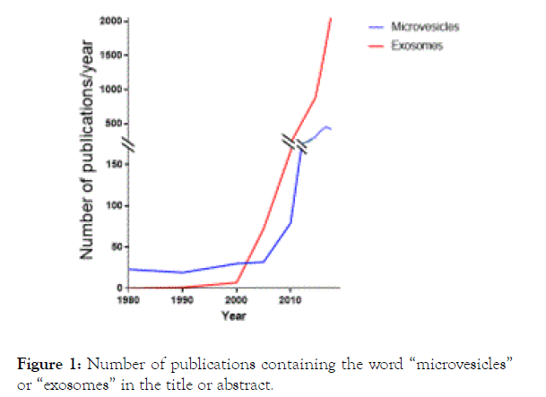 Figure 1. Number of publications containing the word “microvesicles” or “exosomes” in the title or abstract.